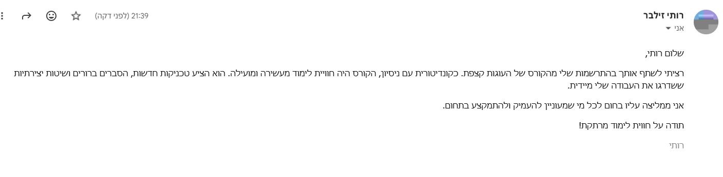 ניתן לפנות אליי במייל ולקבל מענה אישי, נעים ואכפתי – בשמחה.
